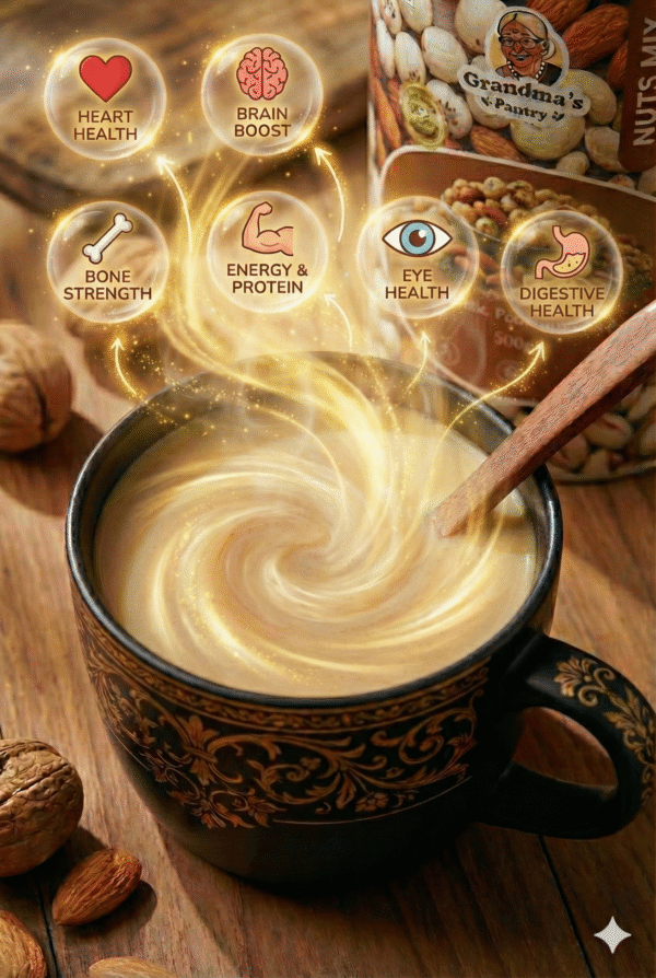 Stop neglecting your daily nutrition and start thriving with Grandma’s Pantry Nuts Mix. Just one spoonful transforms ordinary milk into a powerhouse of vital energy and strength. Your body deserves this premium blend for a healthier heart, sharper brain, and stronger bones. Don’t wait to feel better; experience the digestive and eye health benefits immediately. Commit to your wellness today—daily consumption of this authentic mix is essential for a vibrant life.